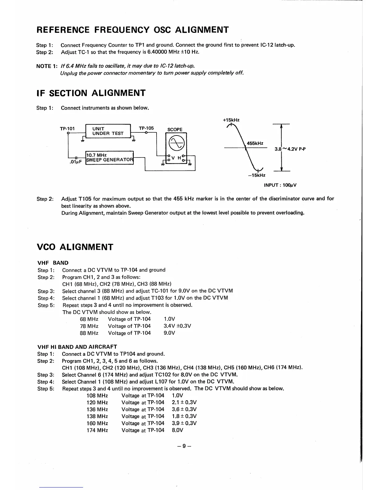Handic 0050 - Reference Frequency Osc Alignment; IF Section Alignment; VCO Alignment