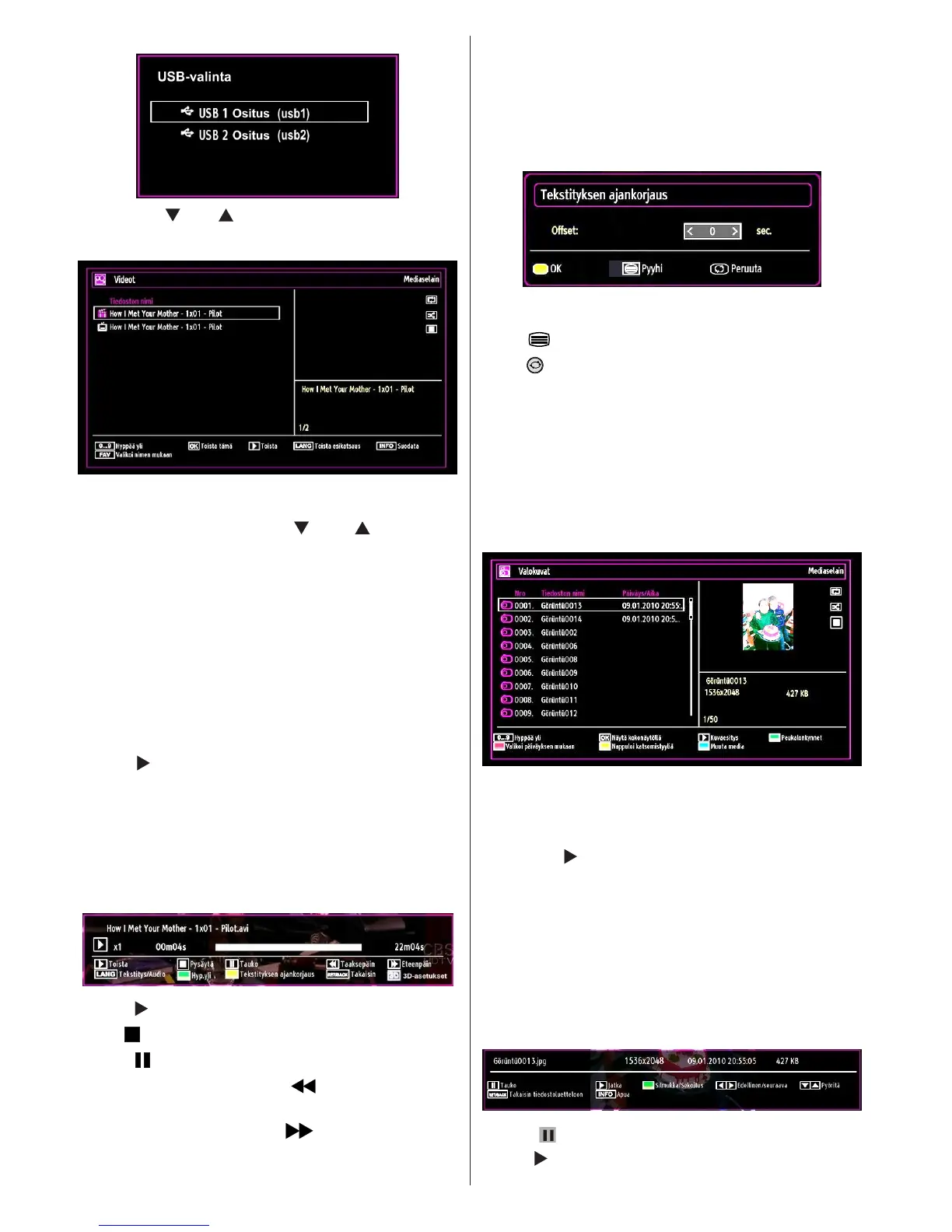 Videoiden katsominen USB-muistin kautta