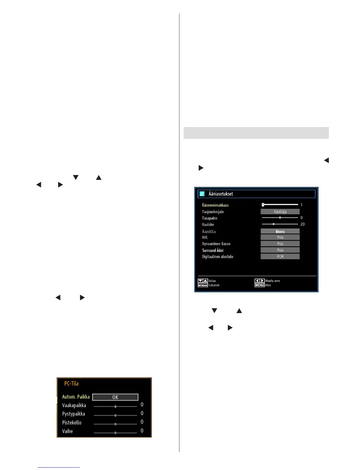 Ääniasetusvalikon kohtien käyttö