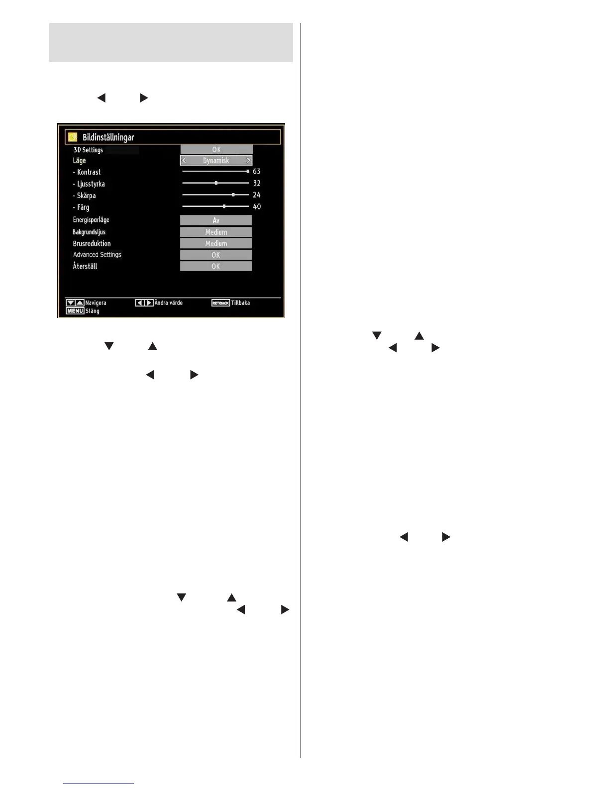 inställningarna som denieras i menyn för TV-bild under