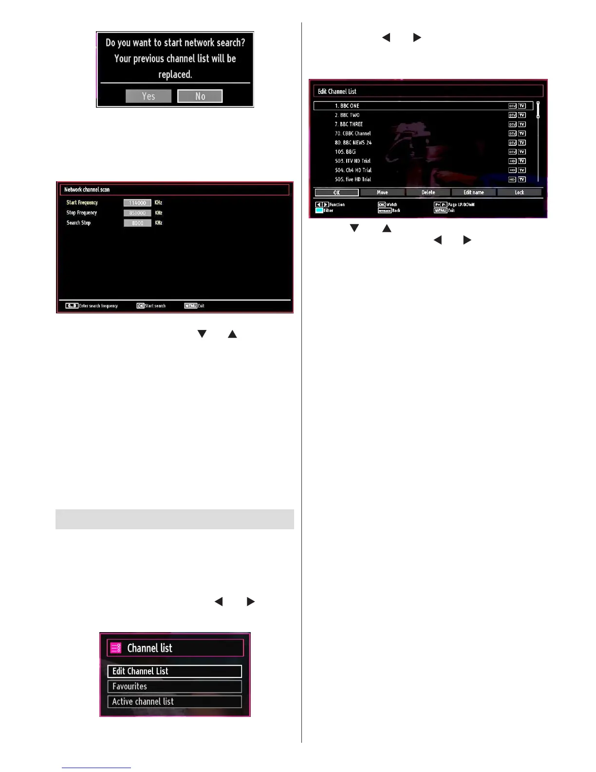 channels. Use “ ” or “ ” and OK buttons to select