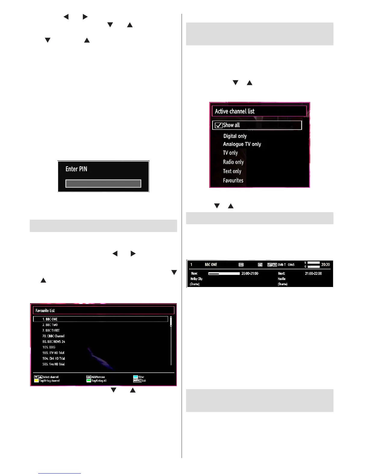 You can set various channels as favourites so that •