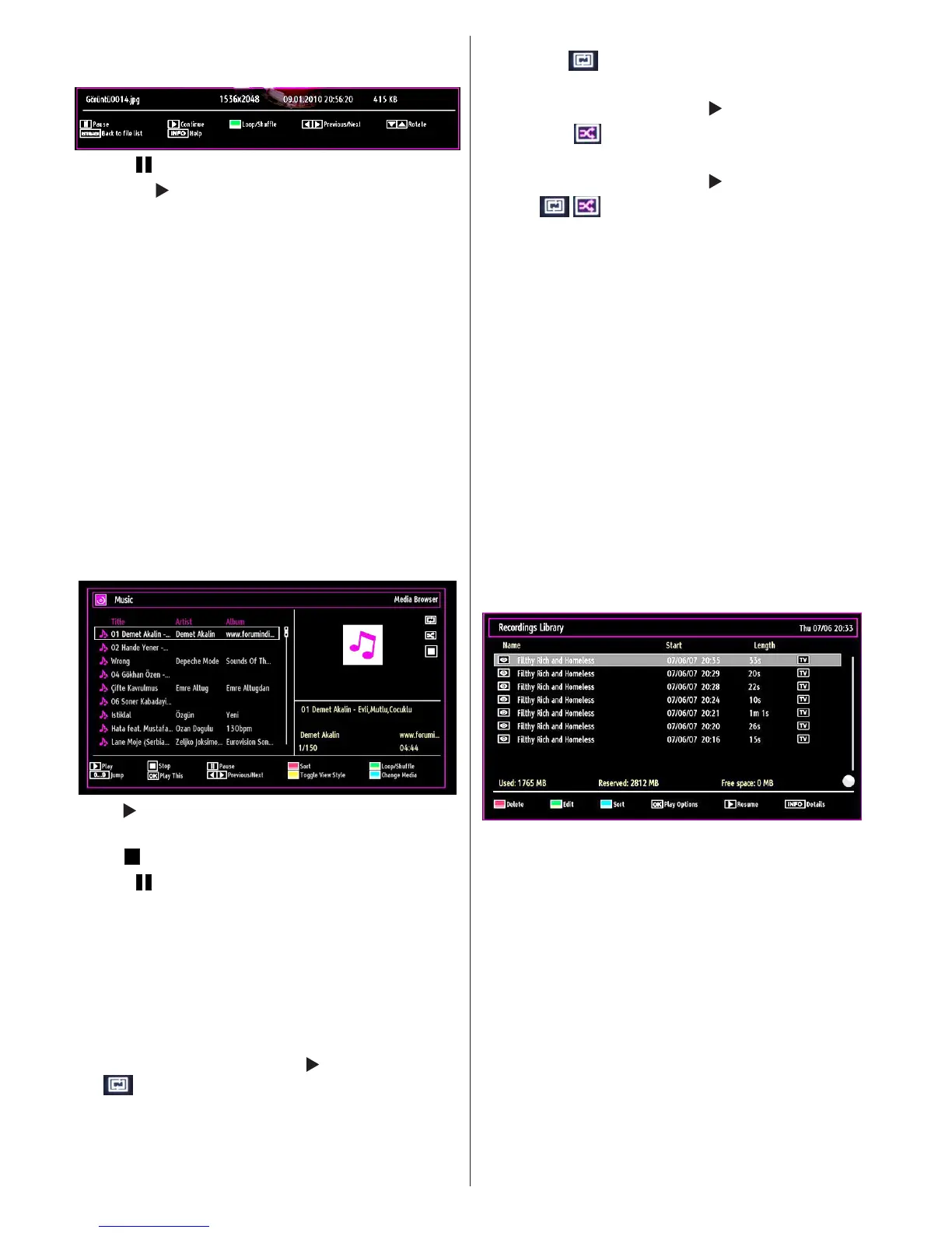 the symbol, the TV will play the next music/video