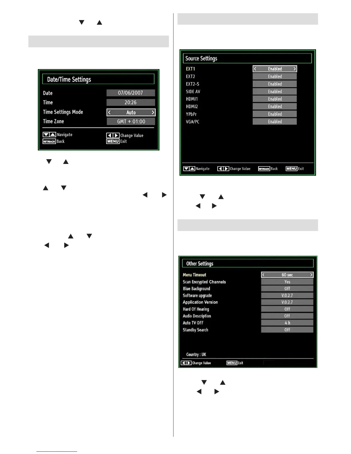 Use “ ” or “ ” buttons to highlight the Time Settings