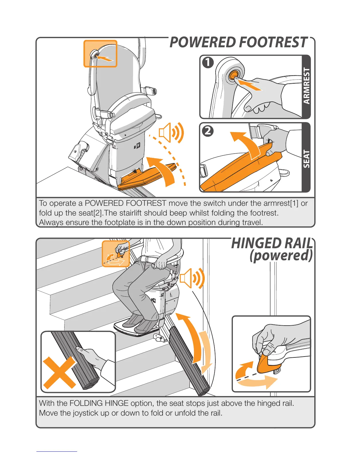 fold up the seat[2].The stairlift should beep whilst folding the footrest.
