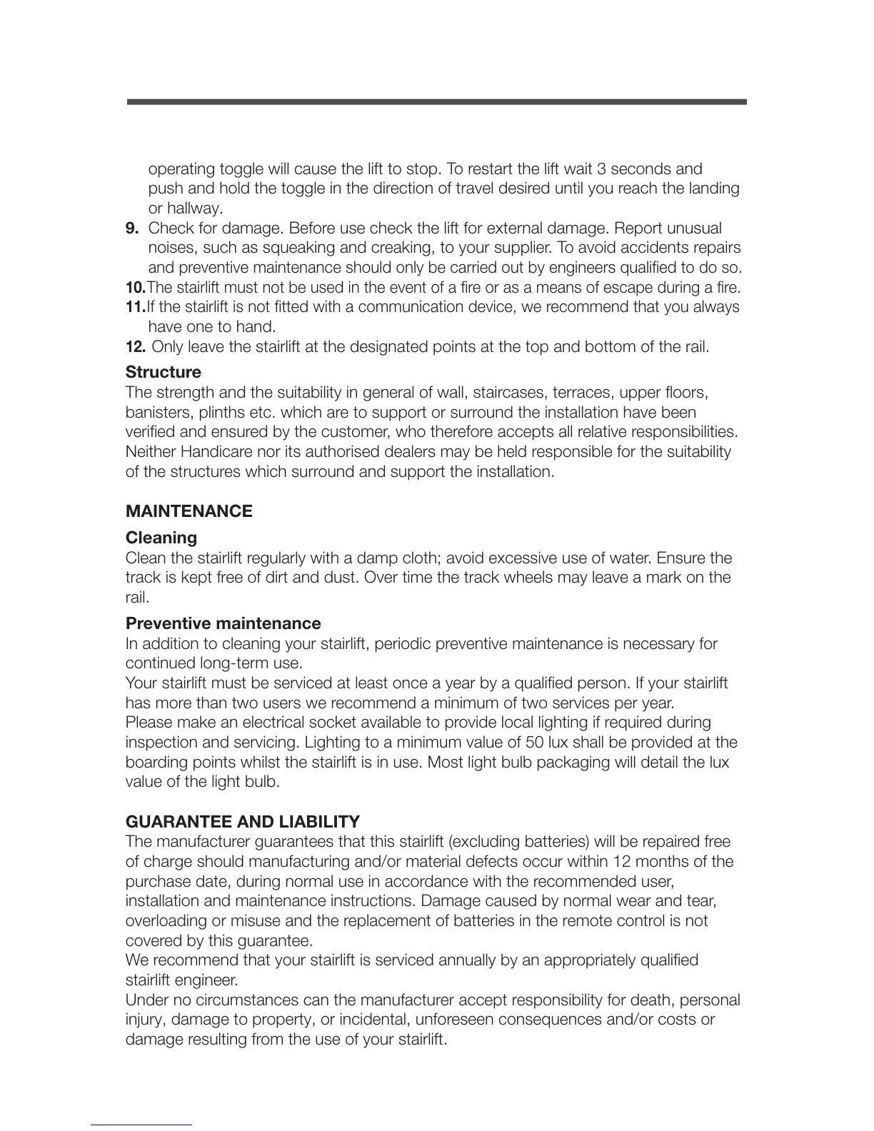 Your stairlift must be serviced at least once a year by a qualified person. If your stairlift