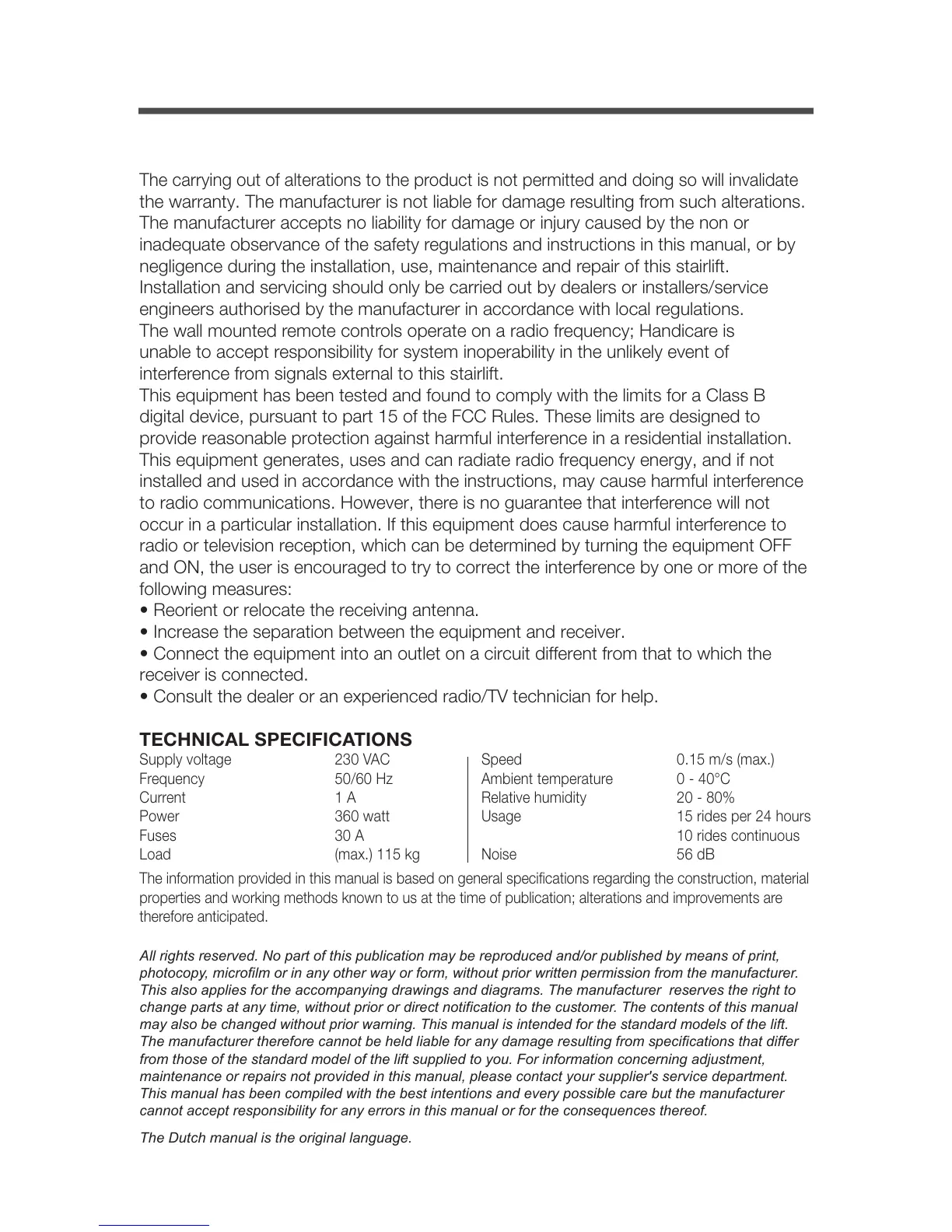 may also be changed without prior warning. This manual is intended for the standard models of the lift.