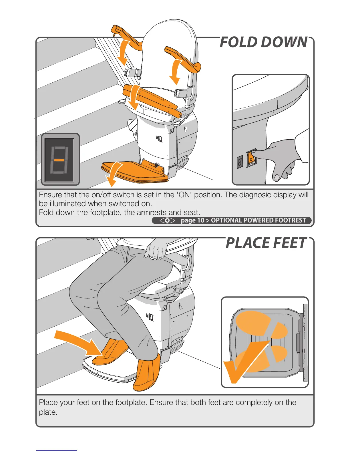 Place your feet on the footplate. Ensure that both feet are completely on the