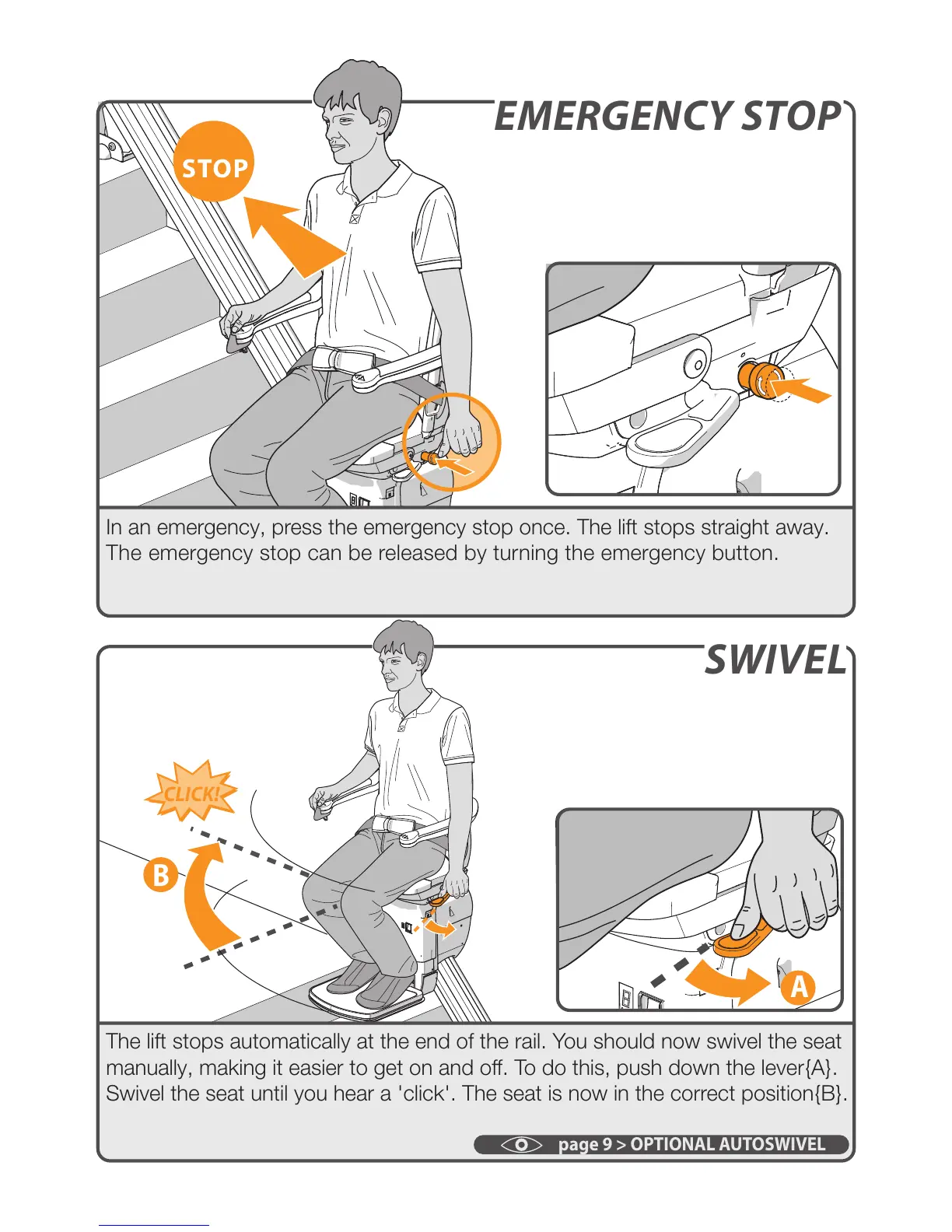 The lift stops automatically at the end of the rail. You should now swivel the seat