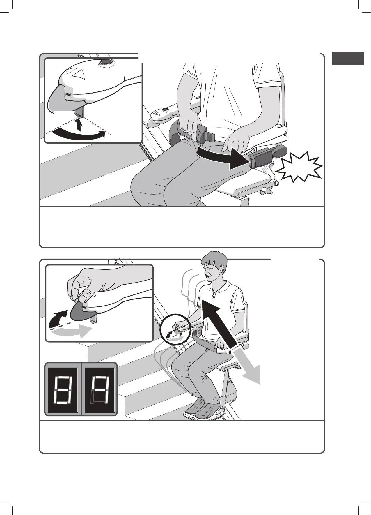 Vierteldrehung nach rechts. Prüfen Sie, ob der Sitz verriegelt ist.