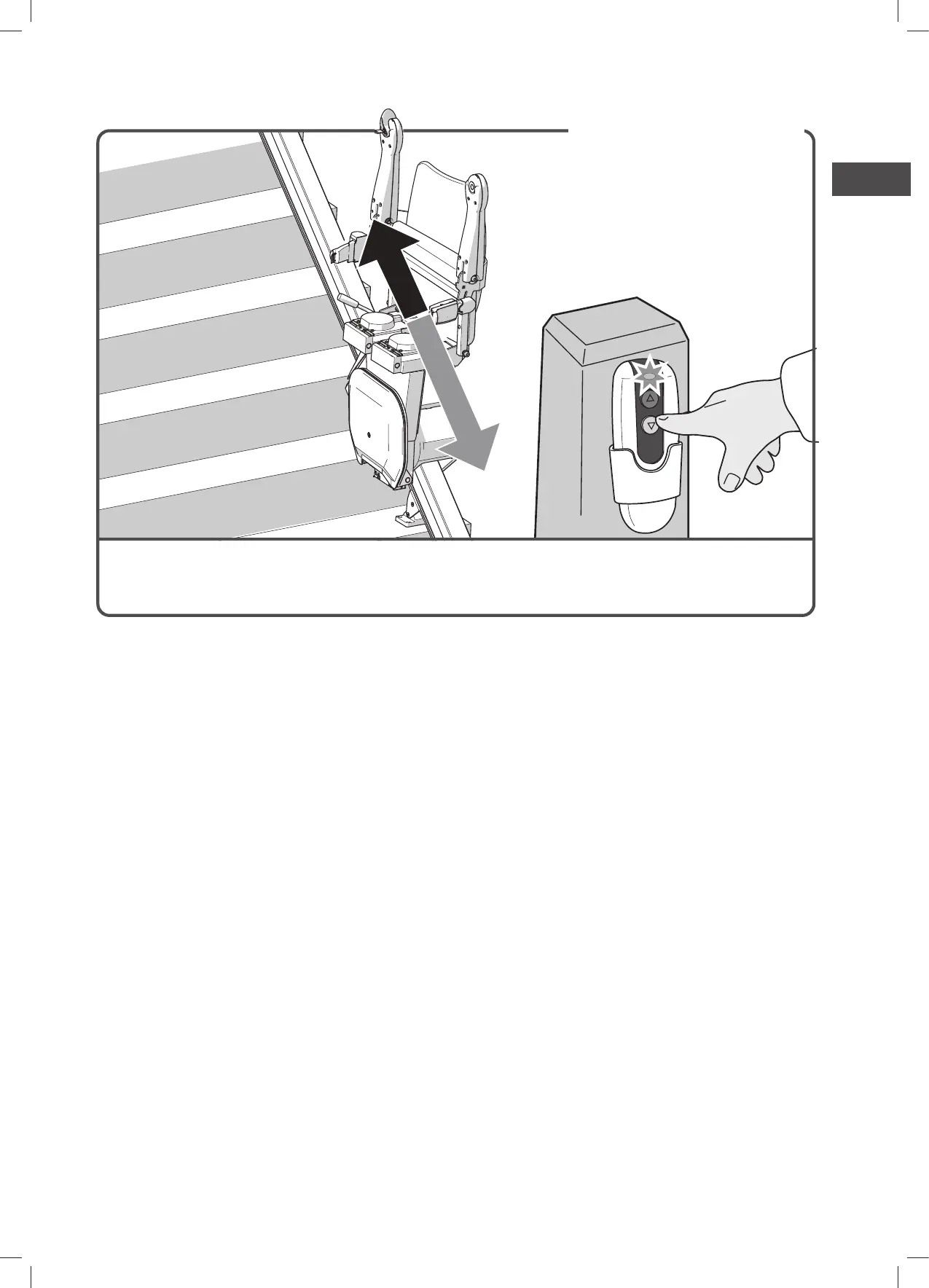 Maintenez le bouton de la télécommande enfoncé jusqu'à ce que le monte-escalier