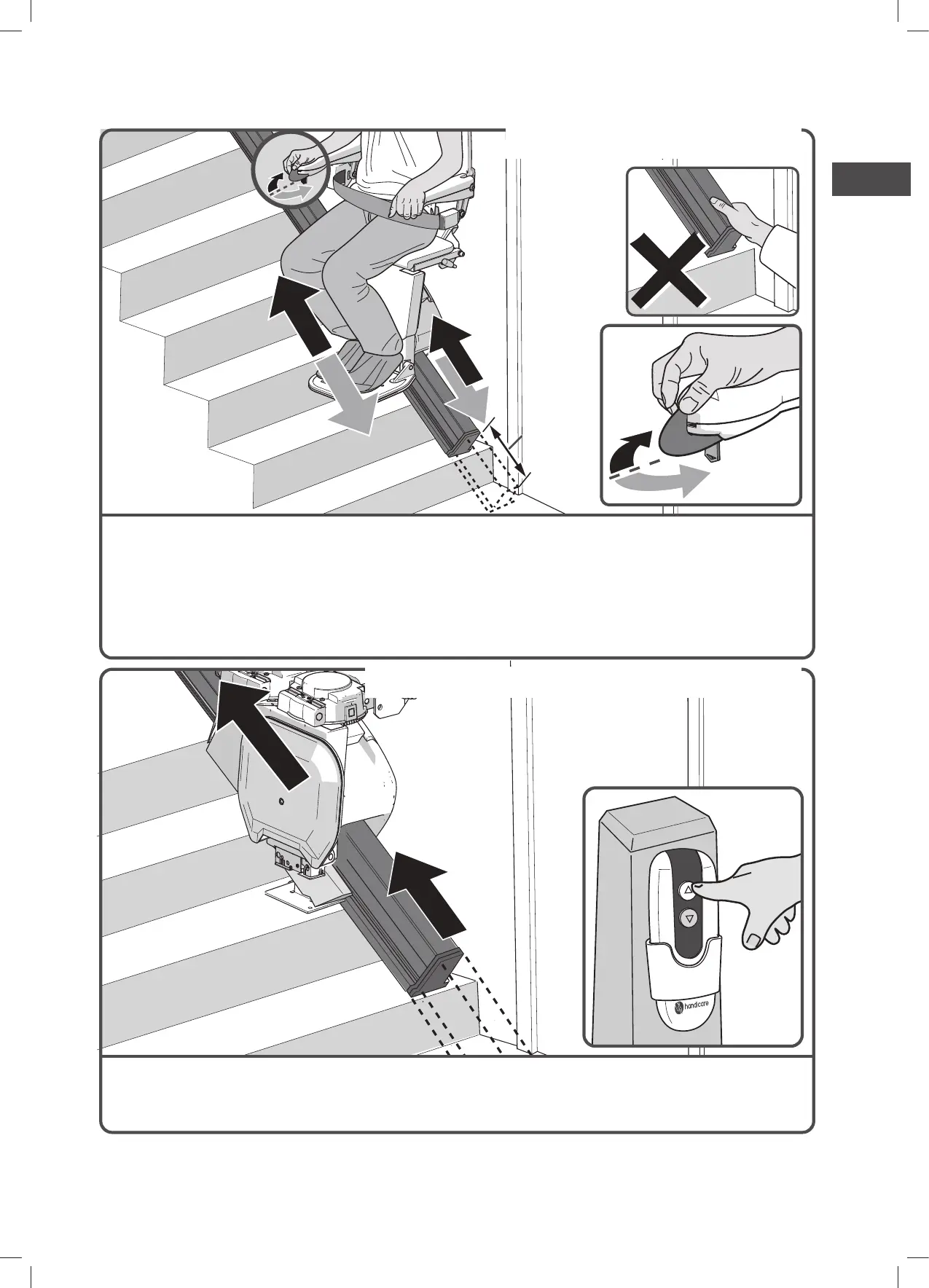 monte-escalier, maintenez enfoncé le bouton HAUT de la télécommande.