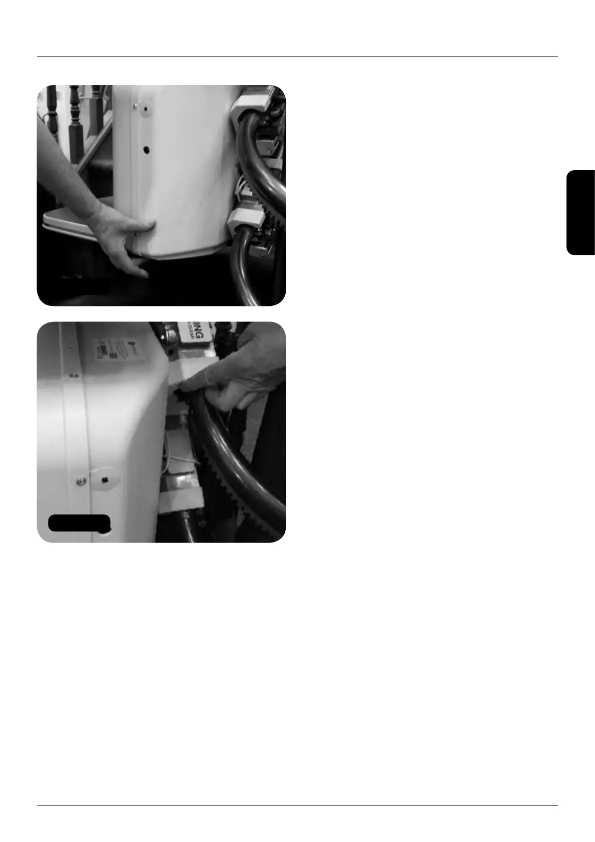 b Druk op de veiligheidsrand onder het chassis.