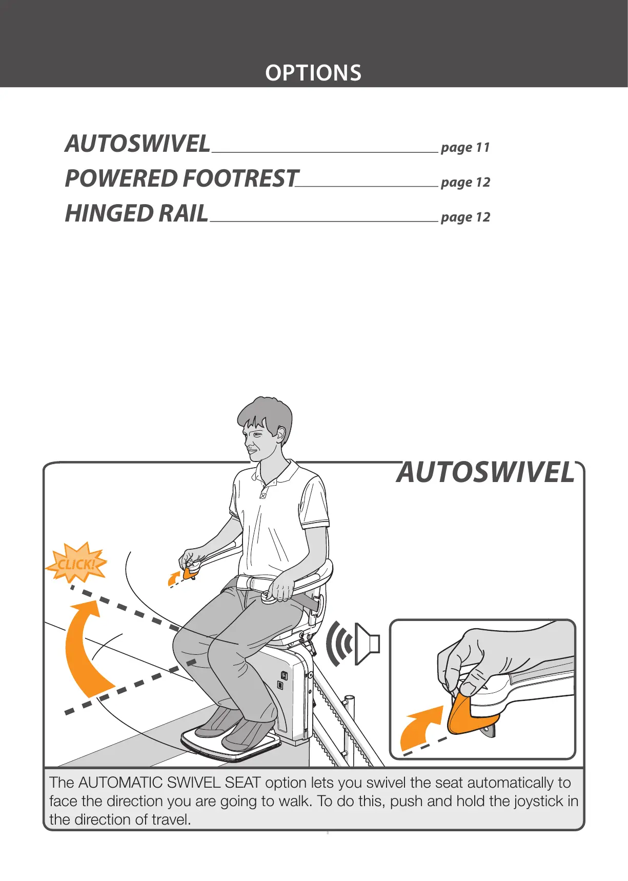 The AUTOMATIC SWIVEL SEAT option lets you swivel the seat automatically to