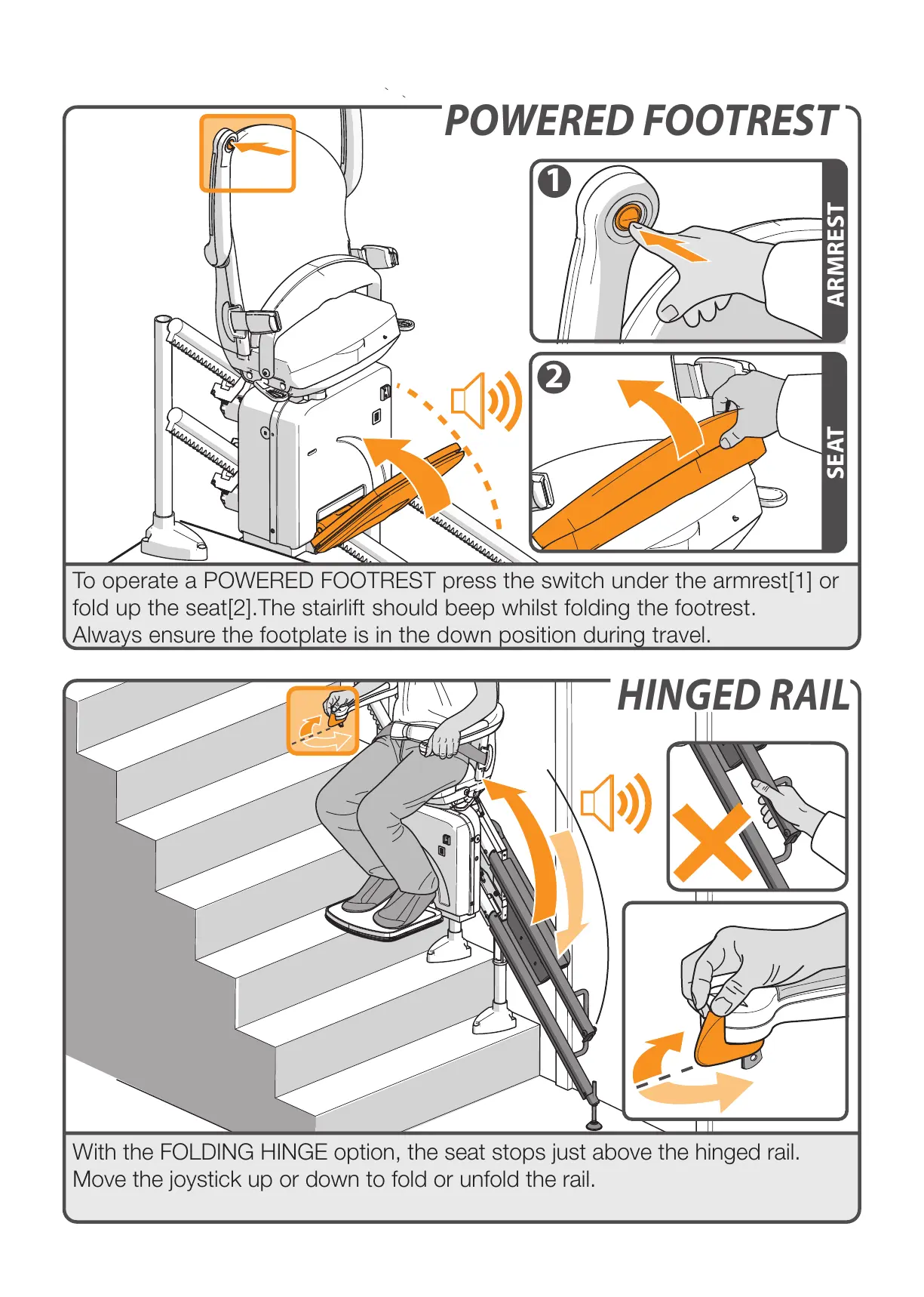 fold up the seat[2].The stairlift should beep whilst folding the footrest.