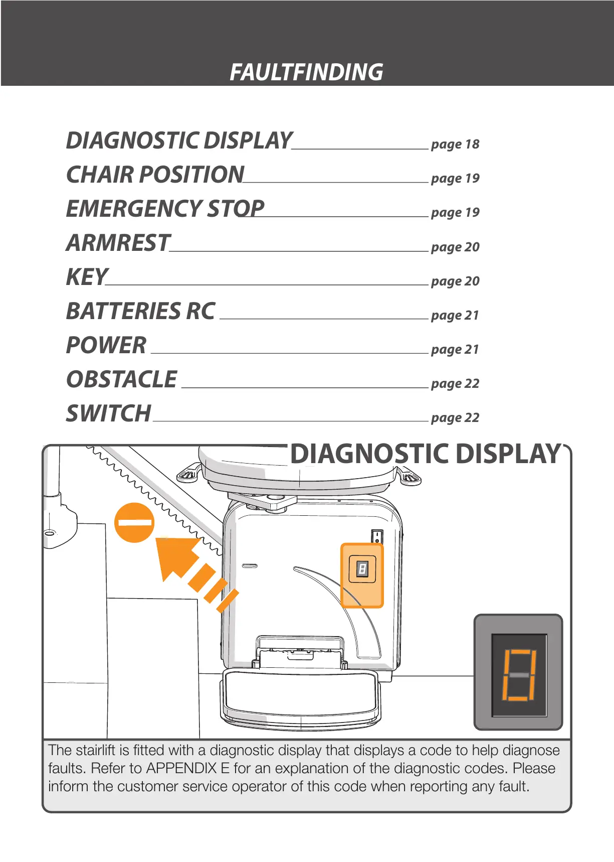 The stairlift is fitted with a diagnostic display that displays a code to help diagnose