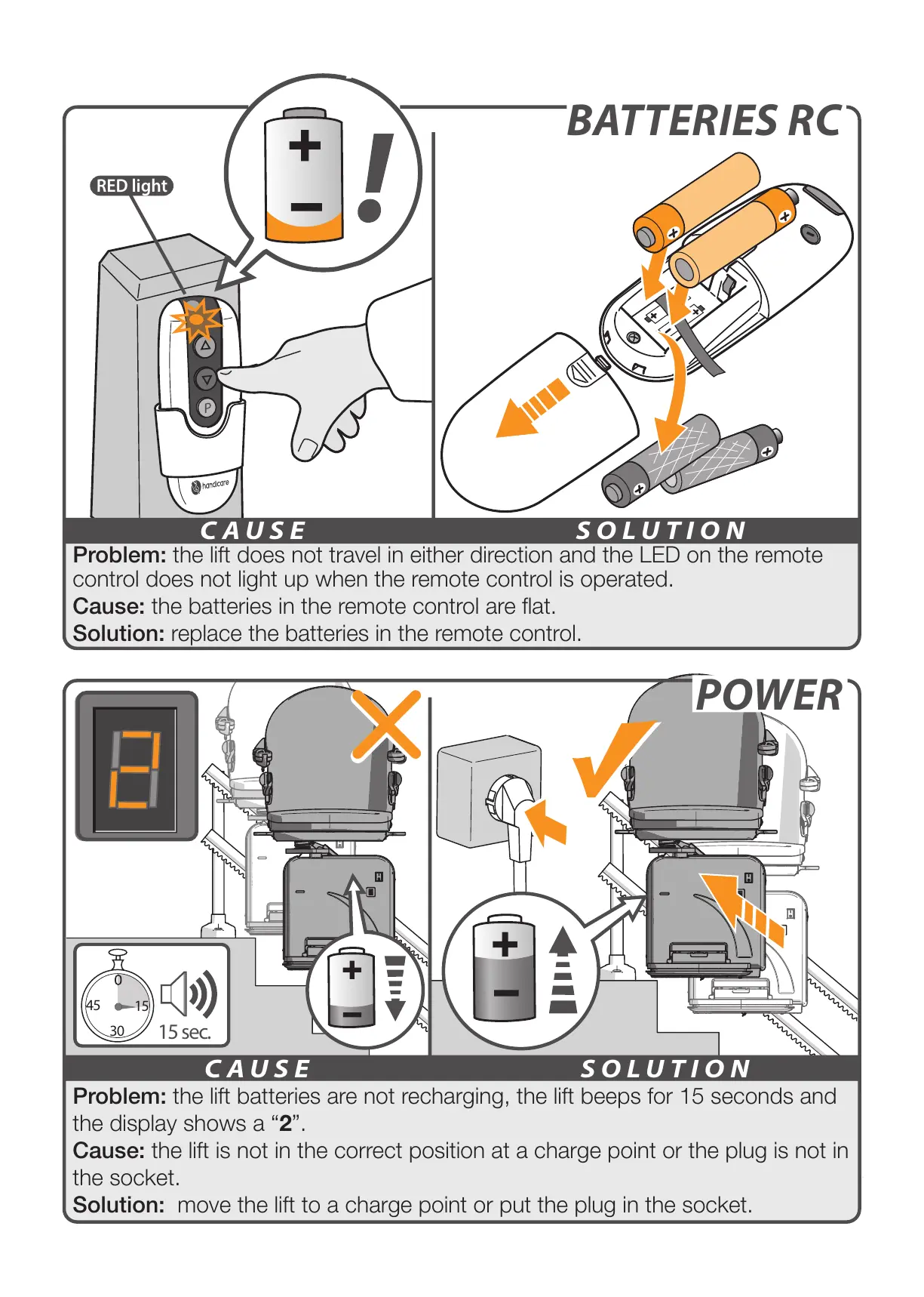 Problem: the lift batteries are not recharging, the lift beeps for 15 seconds and