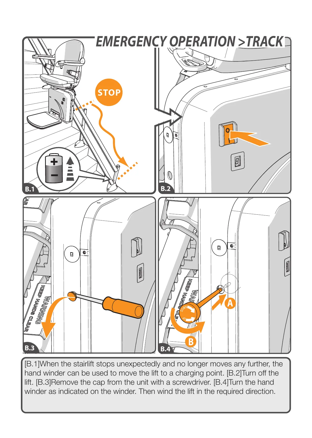 [B.1]When the stairlift stops unexpectedly and no longer moves any further, the
