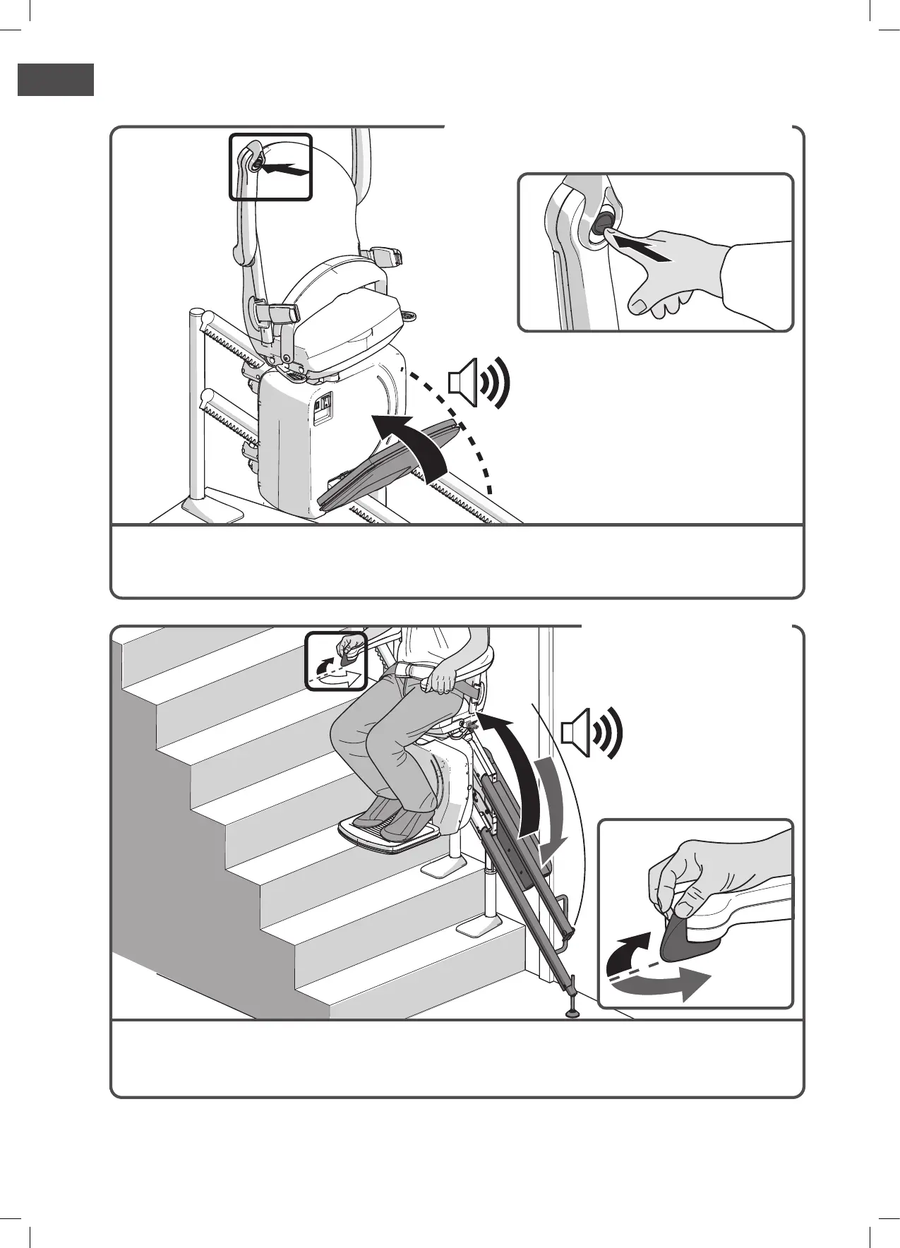 To operate a POWERED FOOTREST press the switch under the armrest. The stairlift
