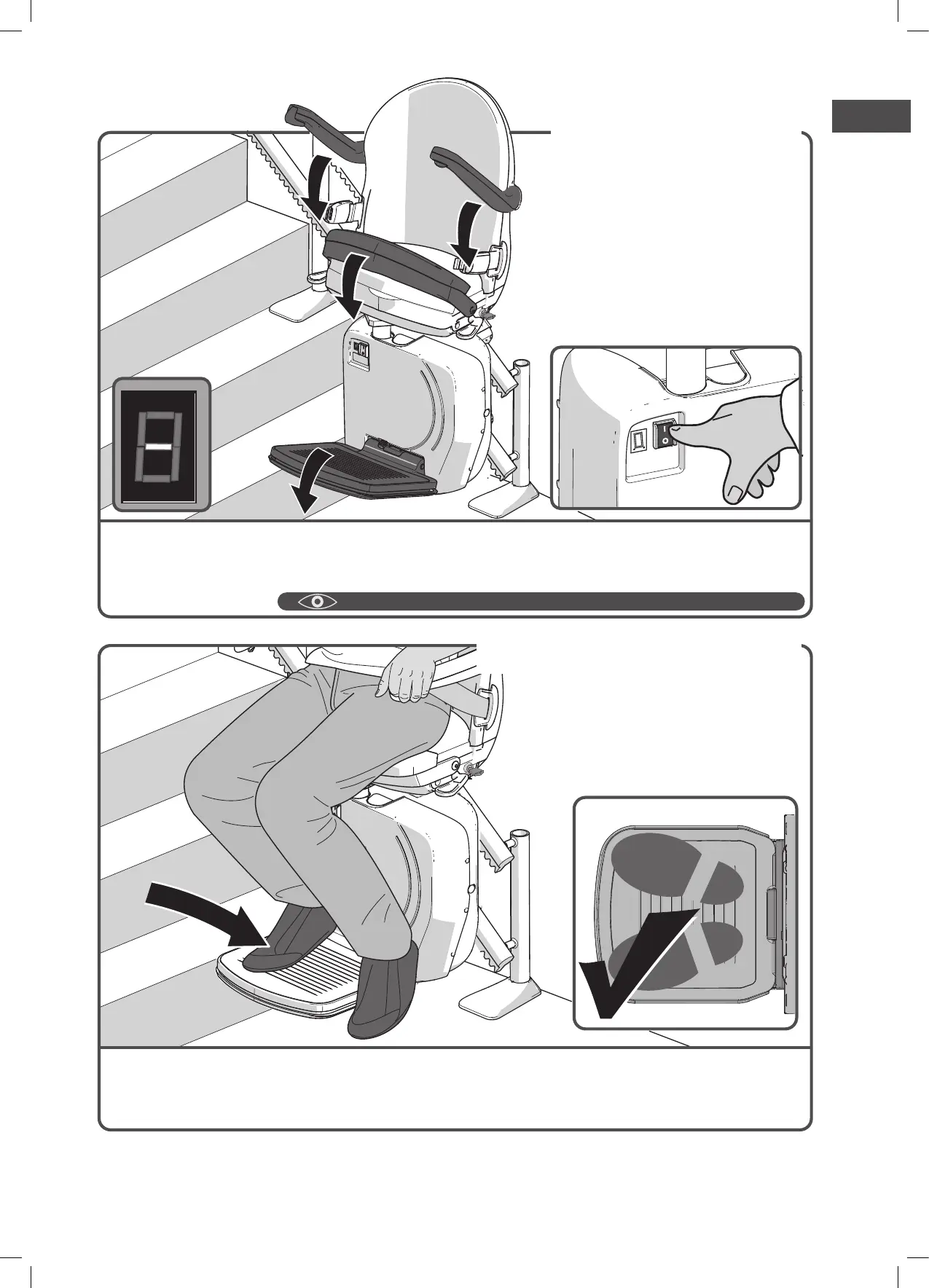 Zorg ervoor dat de aan-/uit-schakelaar in de stand ‘AAN’ staat, als u de traplift wilt