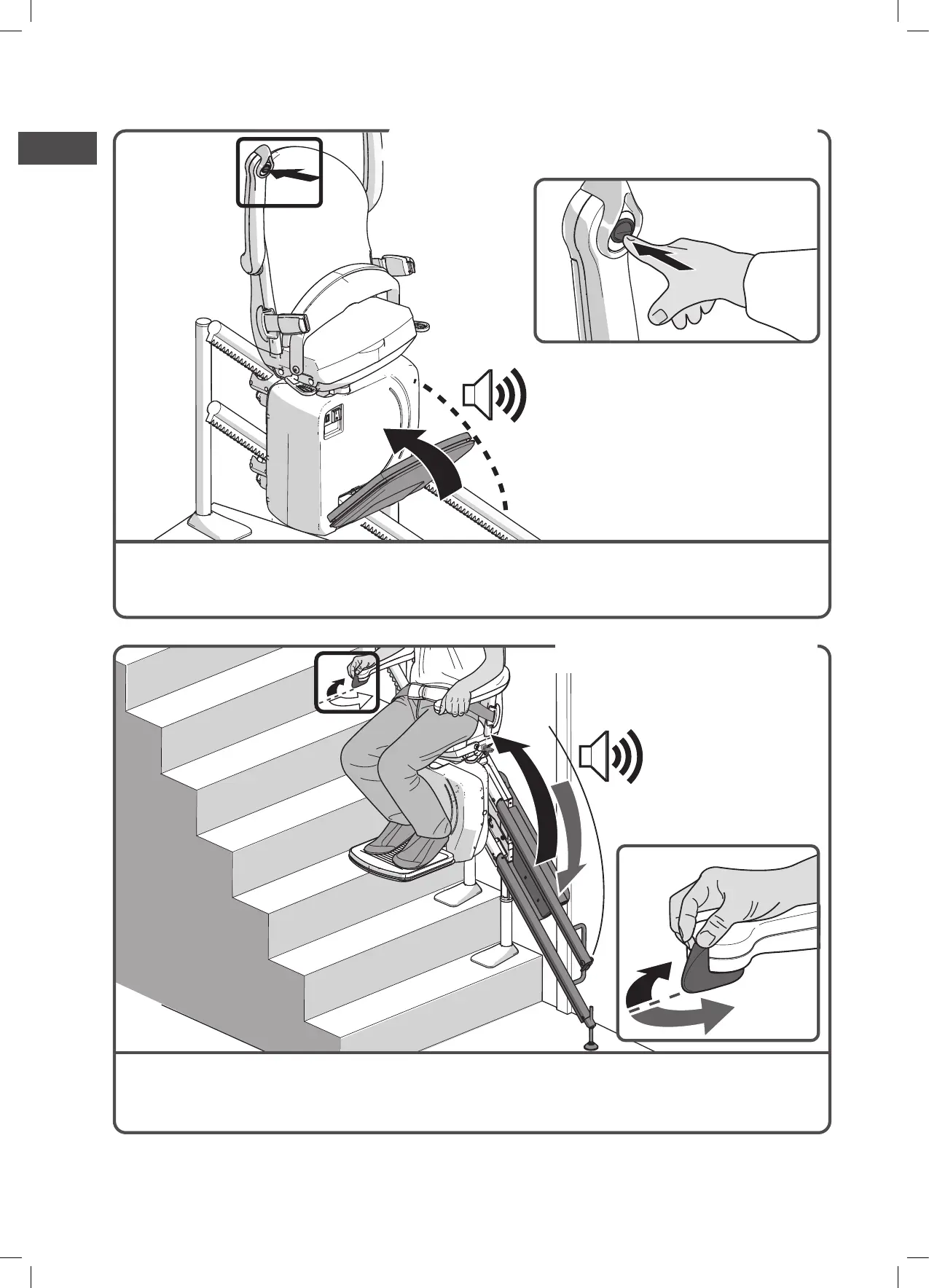 Während die Fußstütze automatisch hochgeklappt wird ertönt ein akustisches Signal.