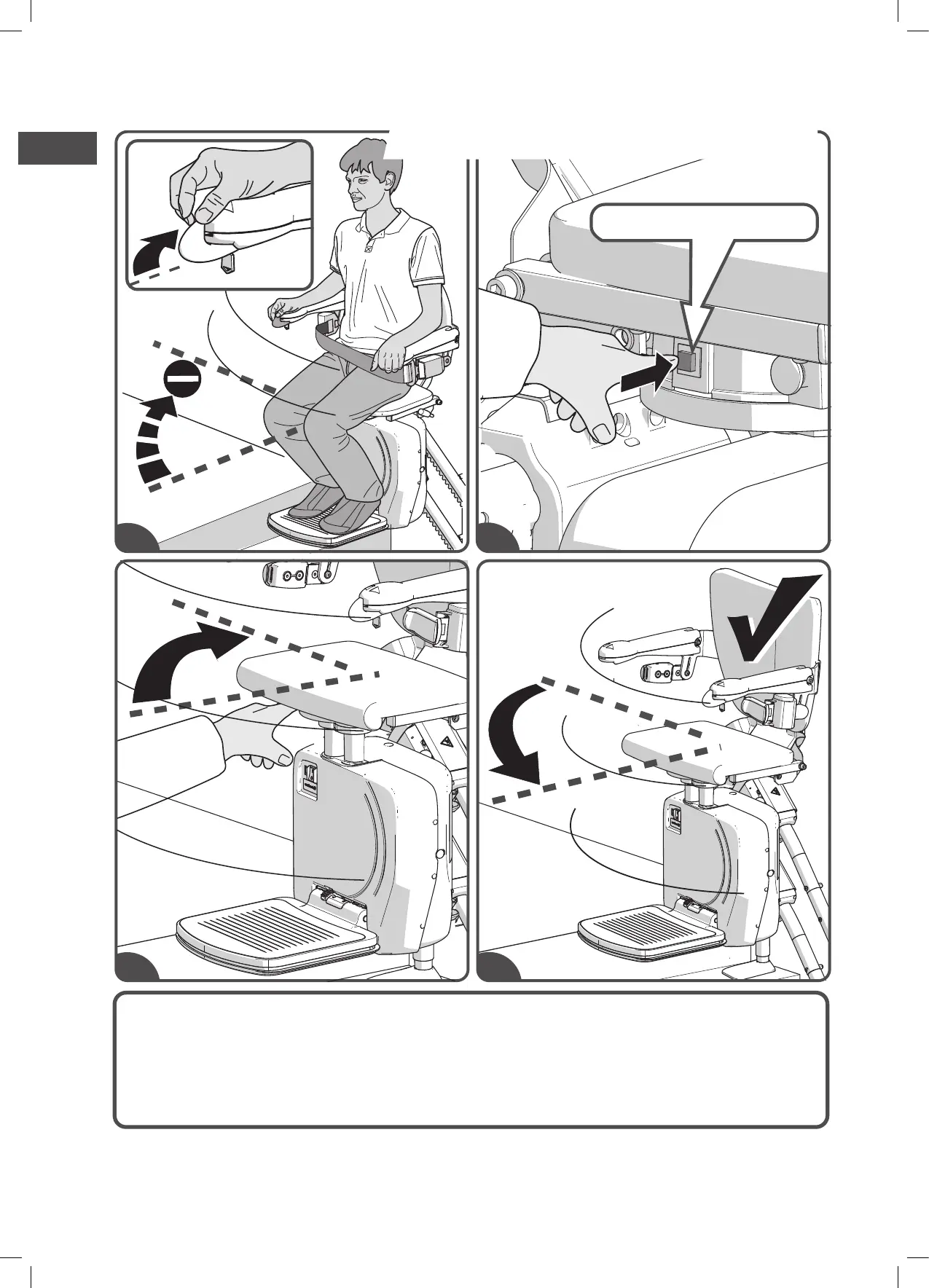 Auslöseknopf. [D.3]Drehen Sie den Sitz manuell. [D.4]Der Sitz muss in seine Startposition