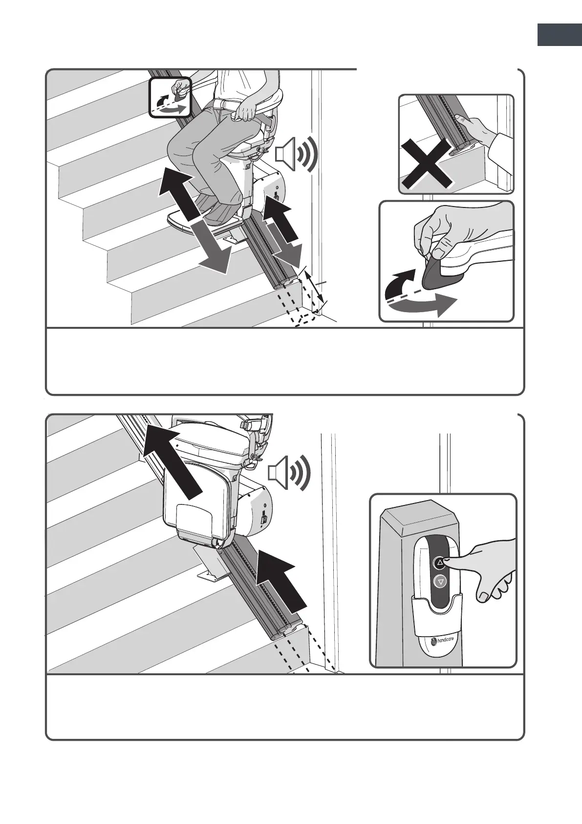 parked at the bottom of the stairs. To park the lift, press and hold the UP button