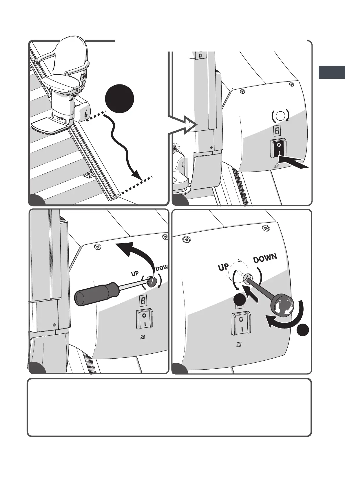 mover la silla salvaescalera hacia abajo, moverla hacia arriba. La silla