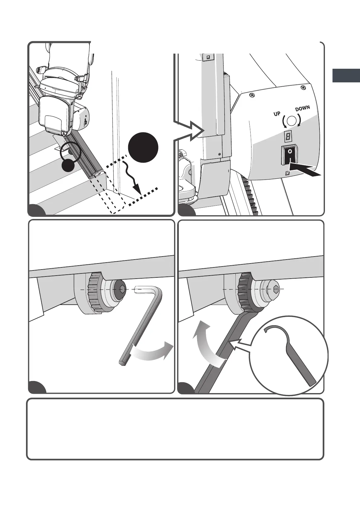 inferior del riel{A}. [D.2]Desconecte el salvaescaleras. [D.3]Para mover el Riel de
