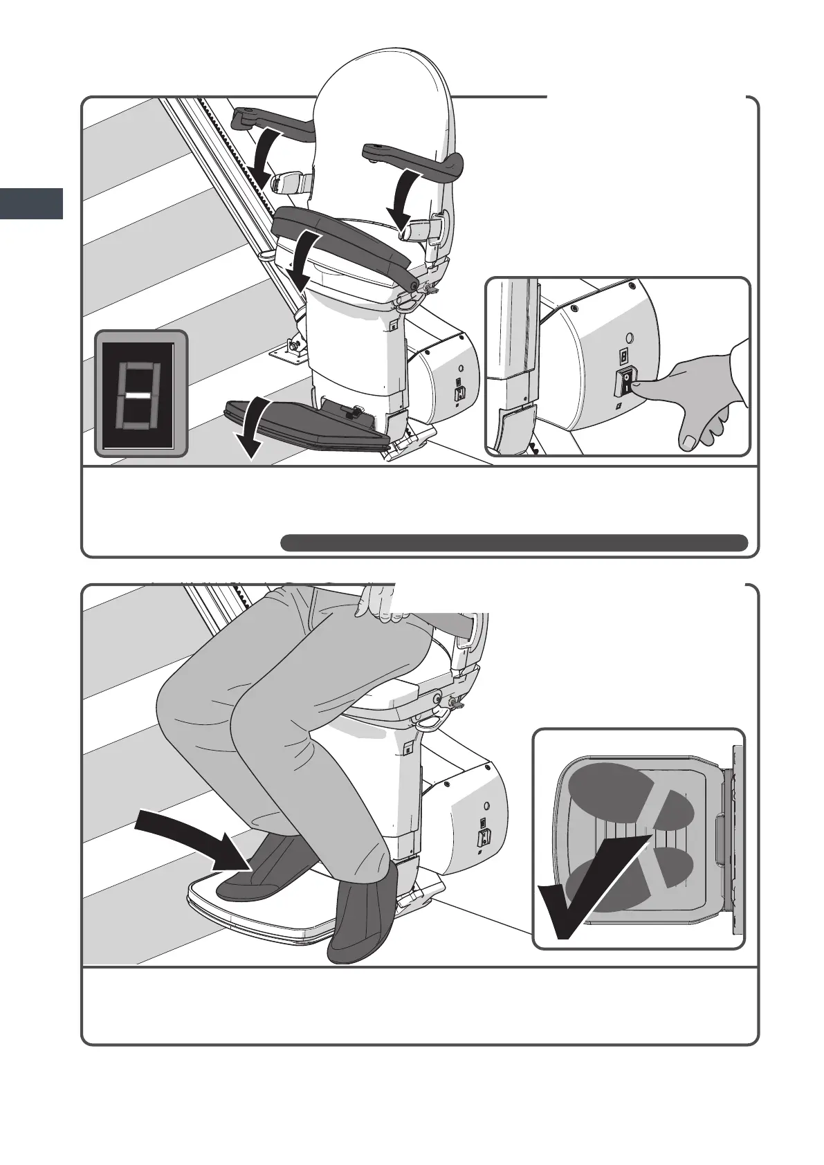 Posizionare i piedi sulla pedana poggiapiedi. Assicurarsi che i piedi non