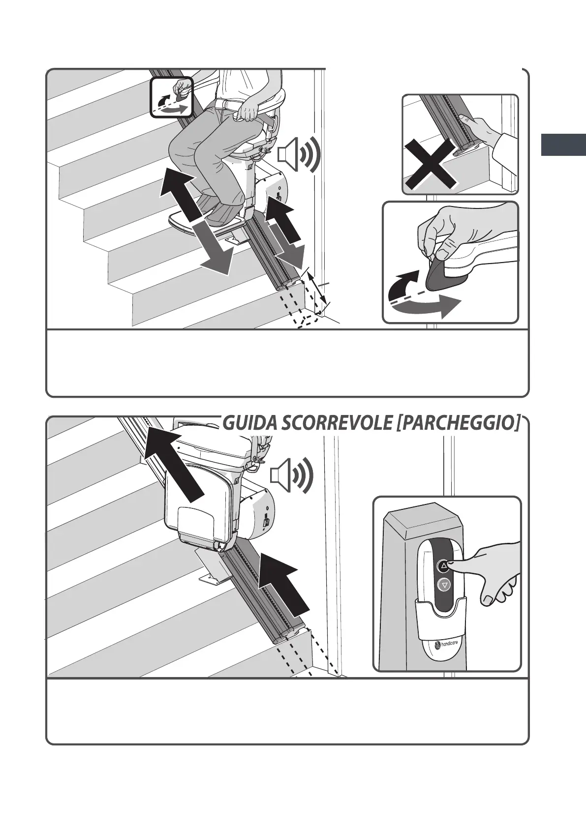 e’parcheggiato al fondo delle scale. Per parcheggiare il montascale, tenere