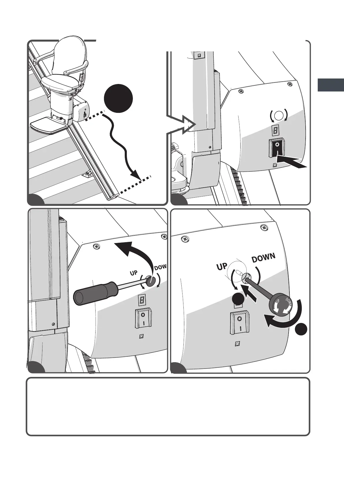 manovella per spostarlo fino a un punto di ricarica. [B.2]Spegnere il montascale.