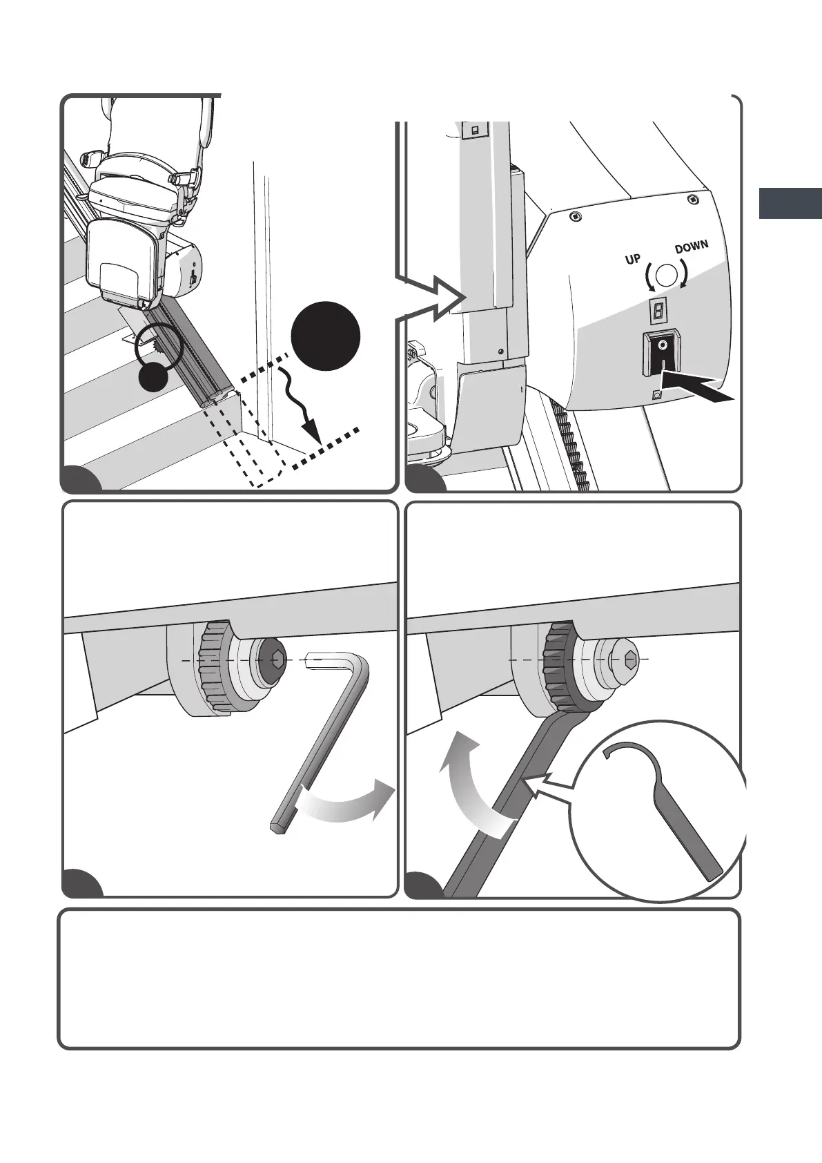 il fondo della traccia{A}. [D.2]Spegnere il montascale. [D.3]Per muovere la Guide