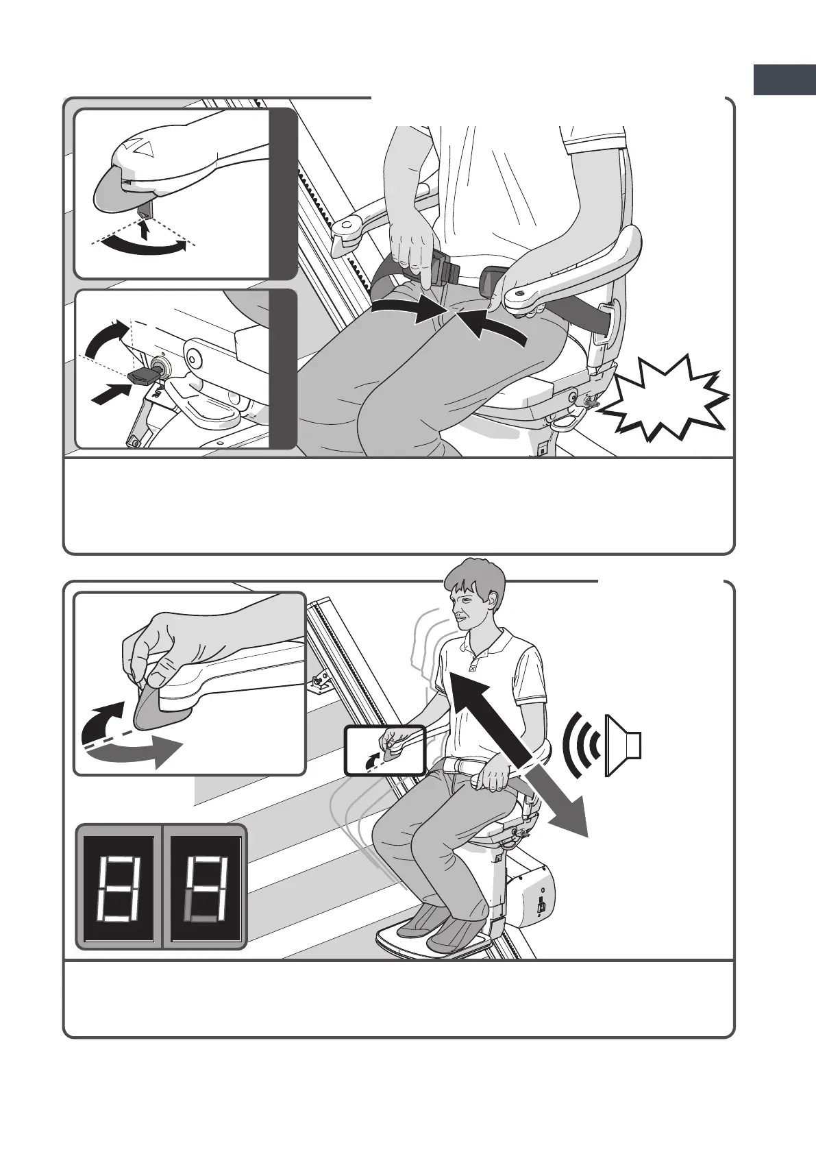 Beweeg en houd de joystick in de gewenste rijrichting. De display laat een “8/9”