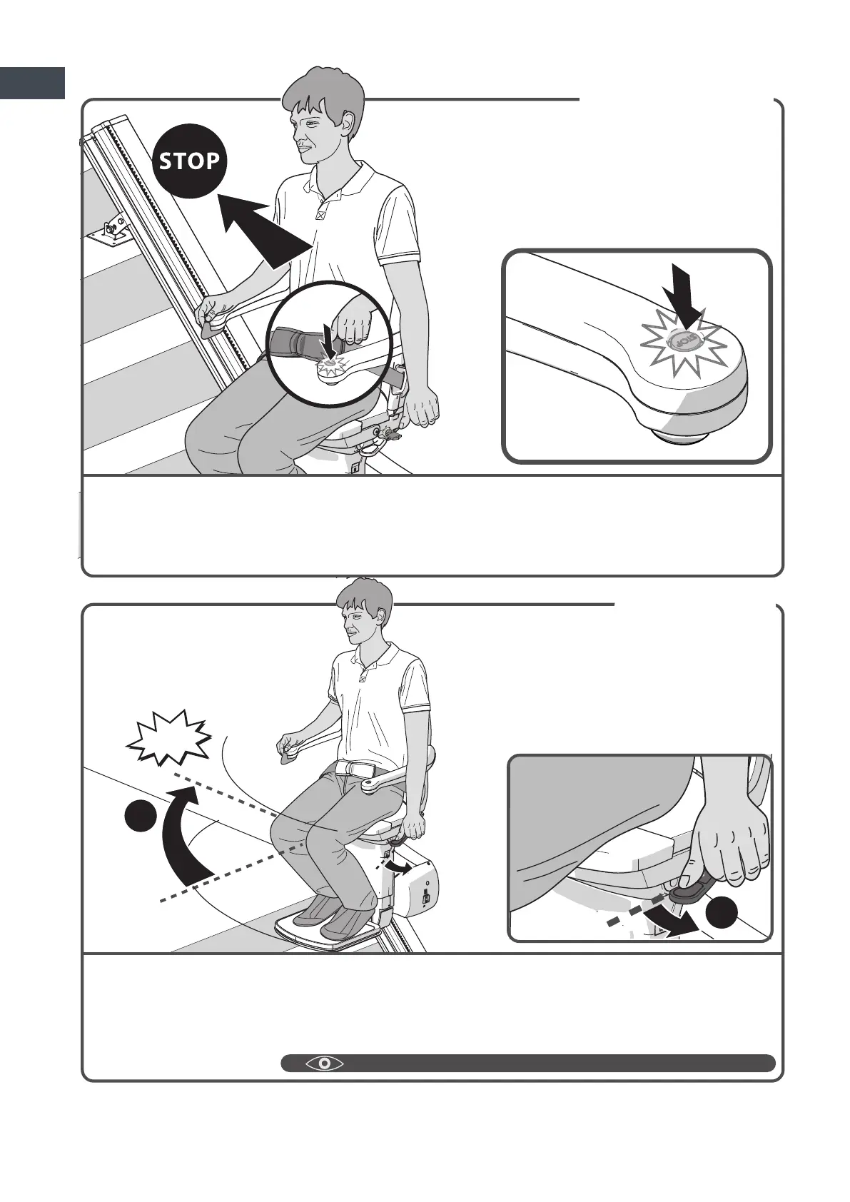 De lift stopt automatisch aan het einde van de rail. U kunt de stoel nu handmatig