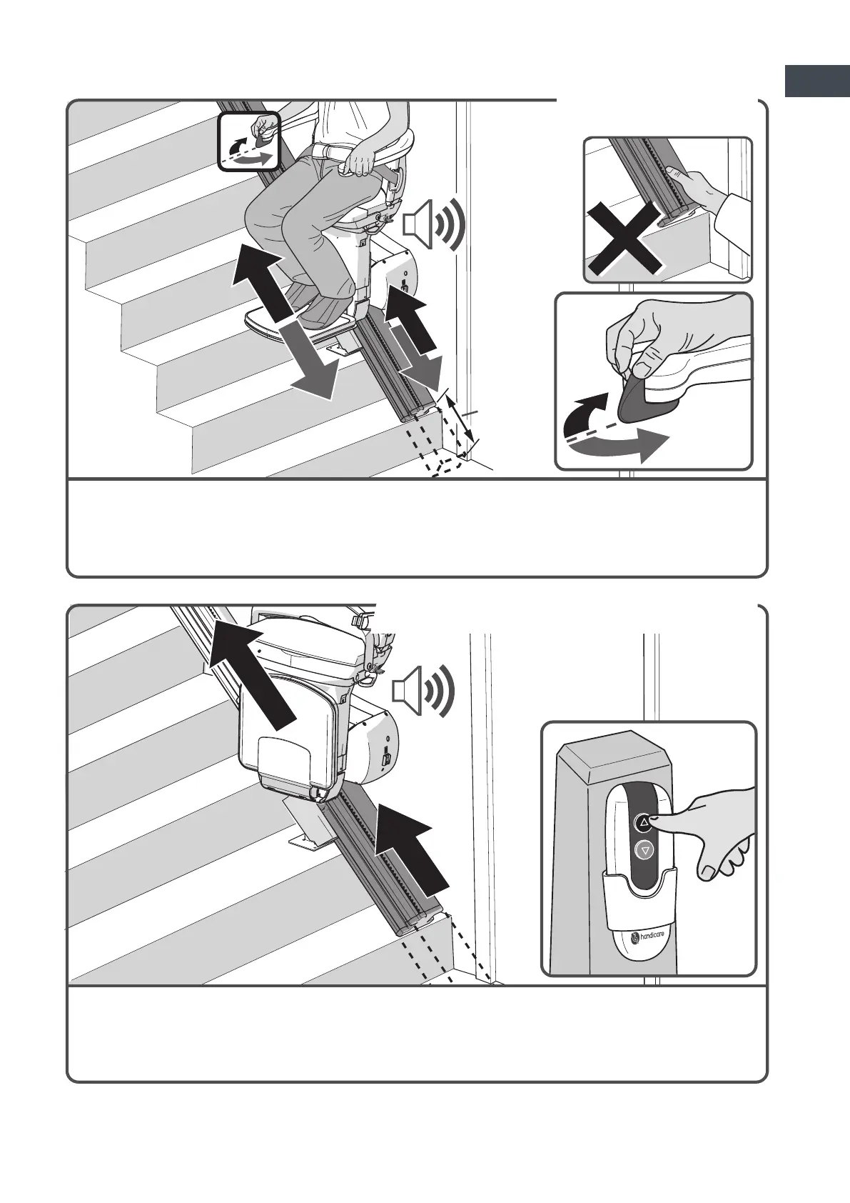 zal de traplift geleidelijk versnellen tot normale snelheid is bereikt en verplaatst