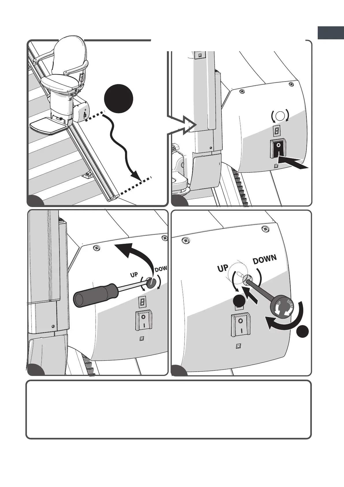 [B.1]Als de lift onverwacht stopt en niet meer verder wil, kan de handwinder