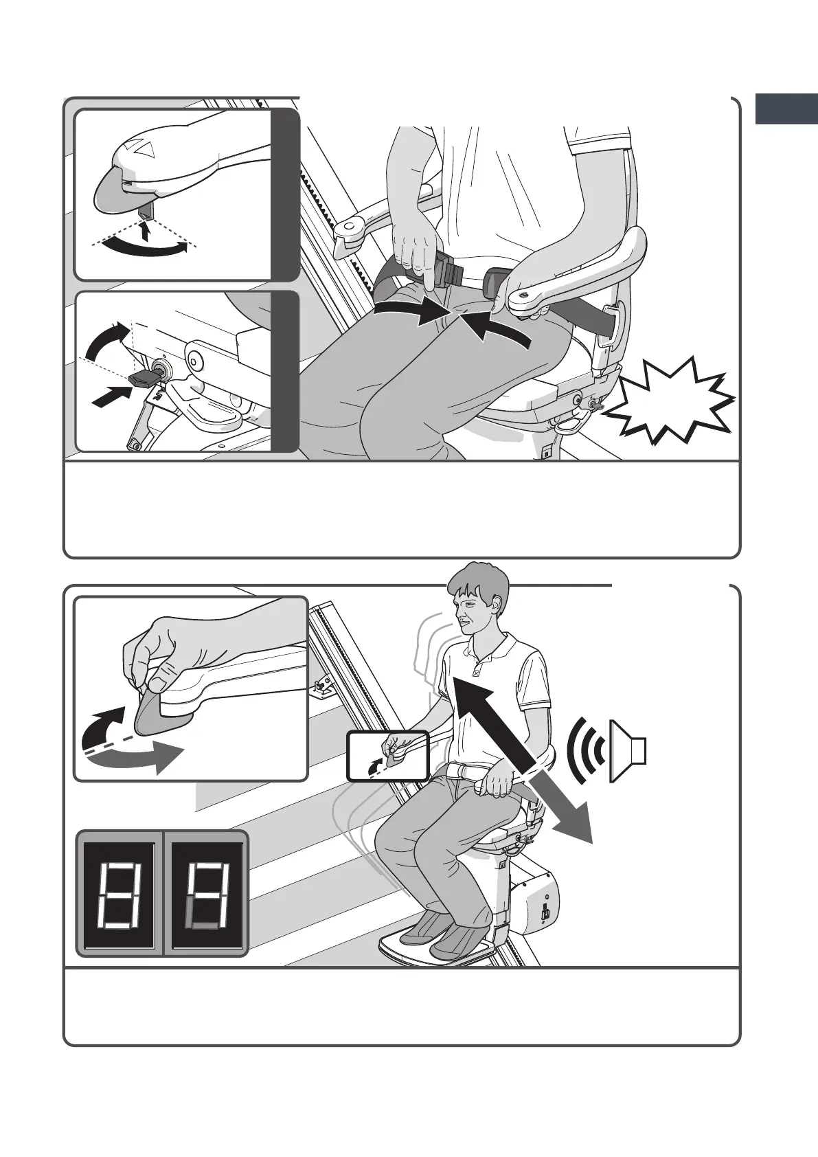 es ertönen drei akustische Signale, und der Lift setzt sich