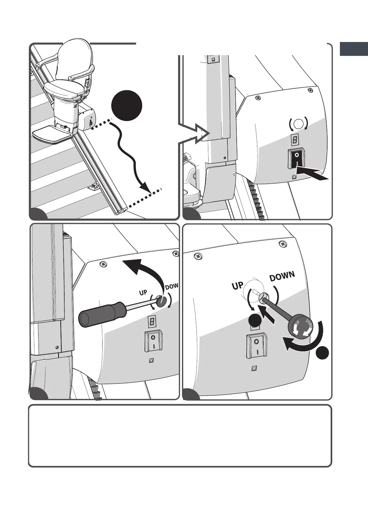oben. Der Treppenlift sollte gewartet werden, bevor er wieder benützt werd.