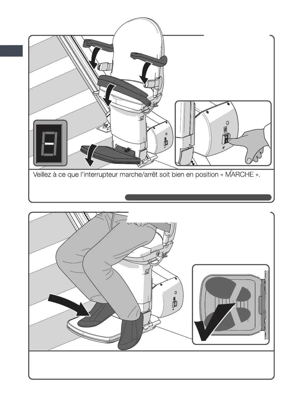Placez vos pieds sur le repose-pieds. Vérifiez que vos deux pieds ne dépassent
