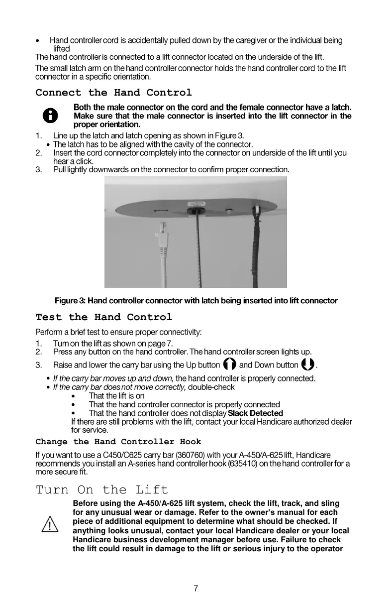 Before using the A-450/A-625 lift system, check the lift, track, and sling