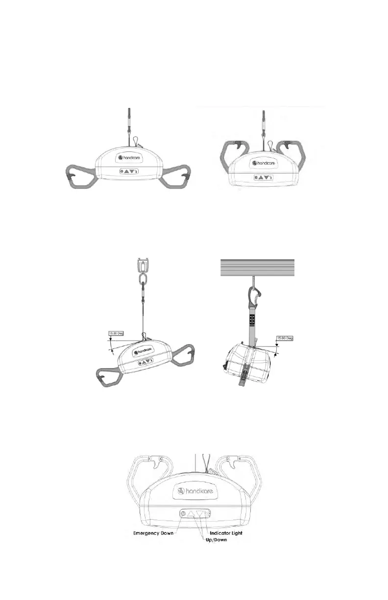 The AP-450 Ceiling lift has hooks that can be turned upwards for storage and transport. The