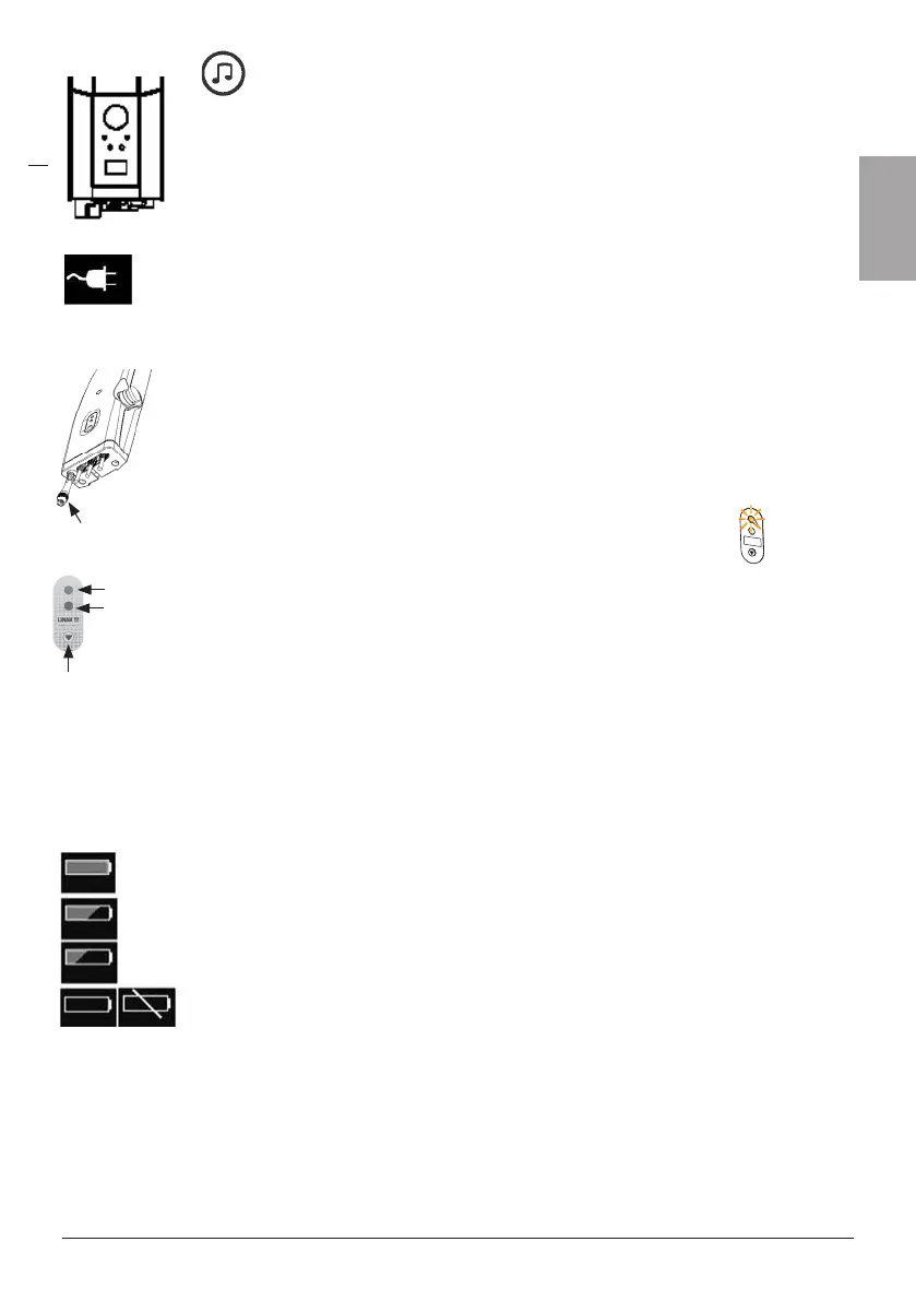 Batterisymbolen visas när kontrollboxen är aktiv och till avstängning, (2 minuter efter användning).