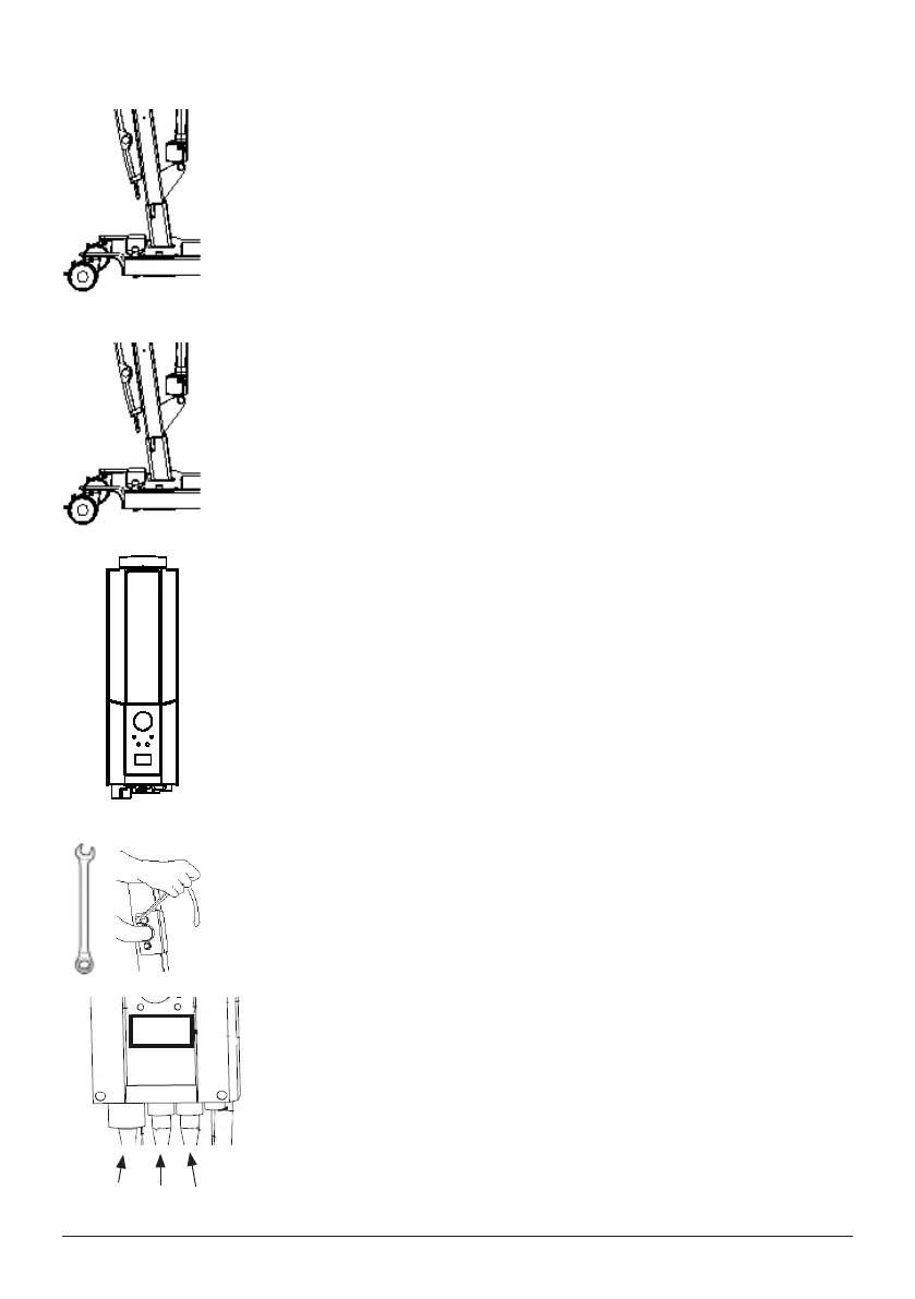 Lukitse alustan pyörät. Aseta nostopilari alustassa olevaan jalkaan.