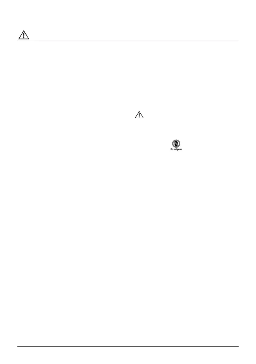 • Beim Heben vom Fußboden müssen die Bremsen der hinteren Laufrollen festgestellt sein. Dies verhindert eine