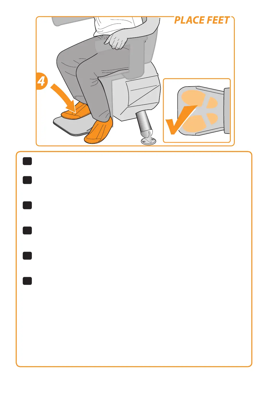 Place your feet on the footplate. Ensure that both feet are completely on the plate.