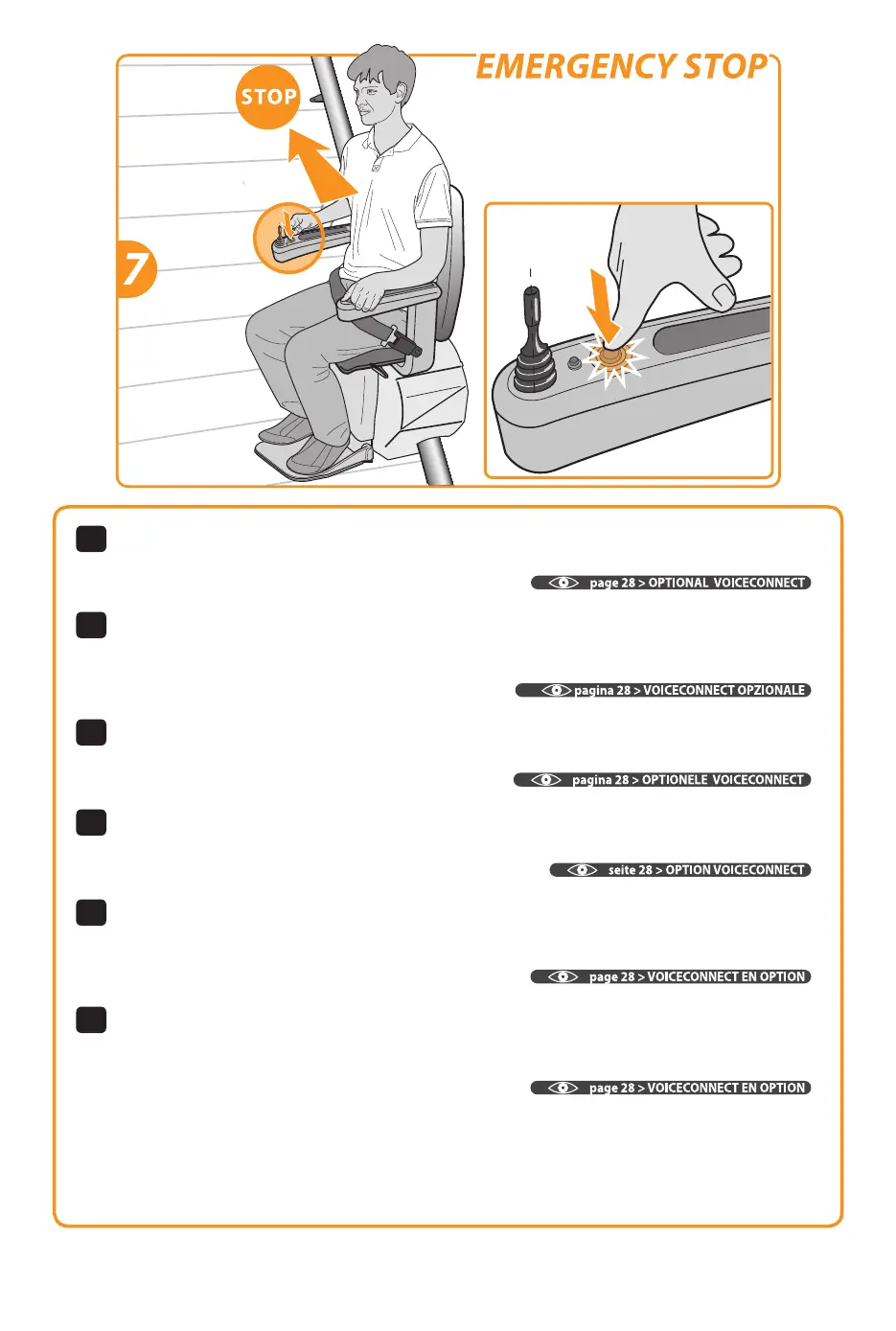 En caso de emergencia, pulse una vez la parada de emergencia. El salvaescaleras