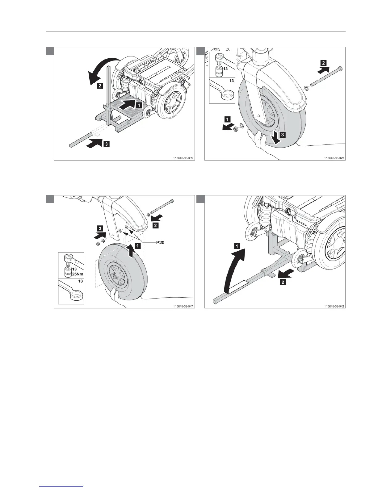 Note! Tighten the shaft and nut of the castor wheels with 25 Nm!