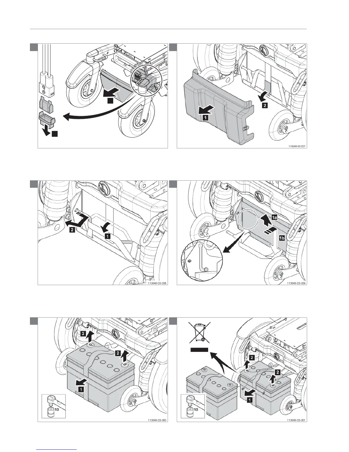 Caution! A battery tray with batteries is a heavy load! Be careful