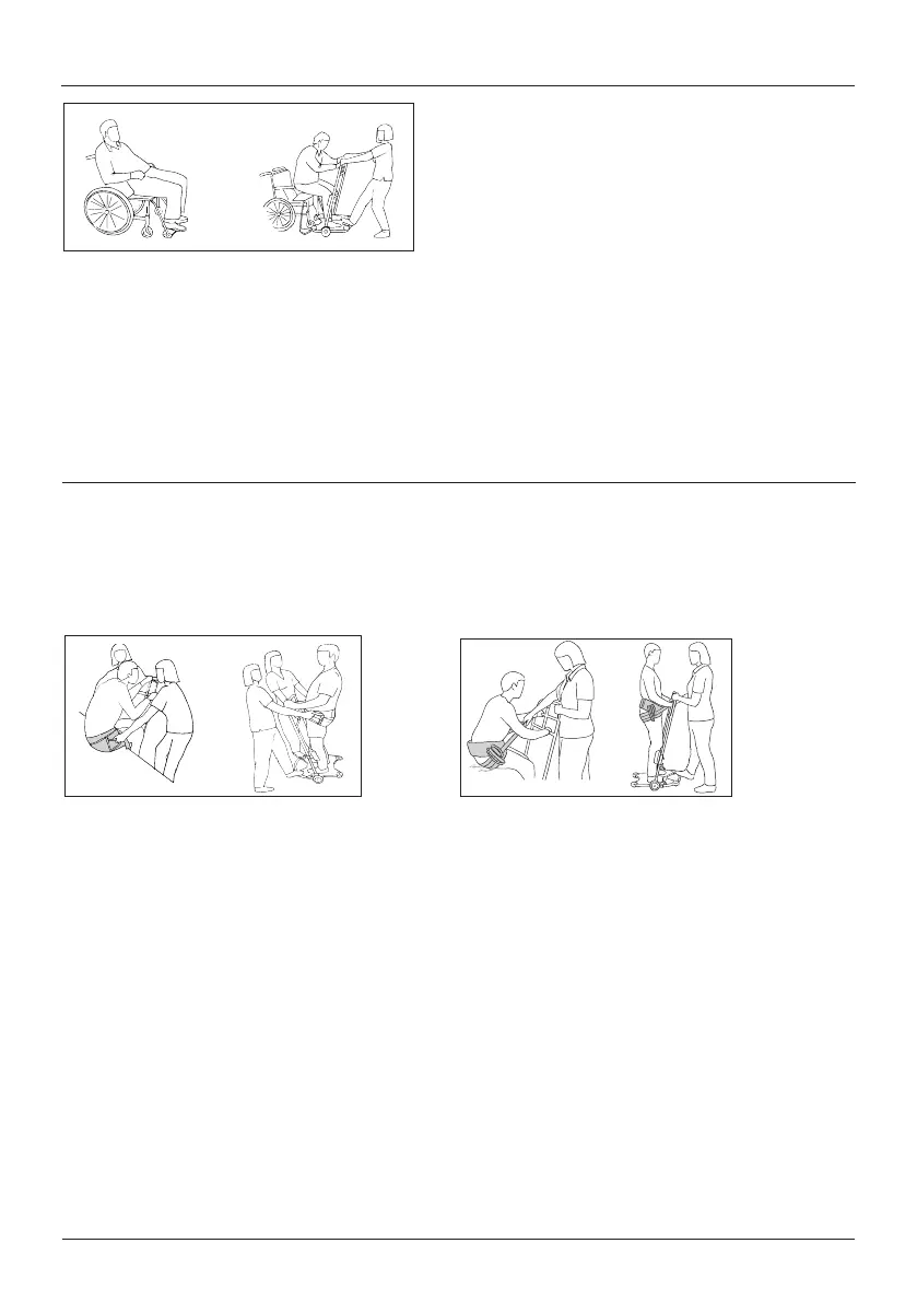 sur la plaque repose-pieds, se penche en avant et se soulève de l’assise. L’assistant exerce un contrepoids. Faire glisser